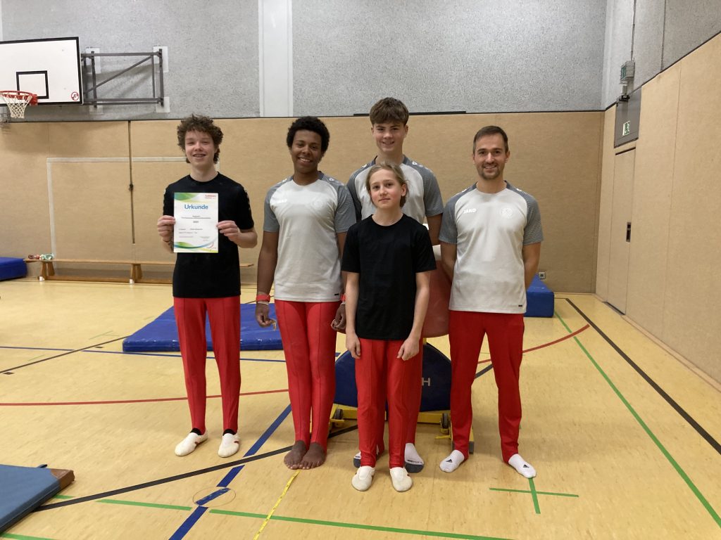 Mathis Claßen und Jakob Grimme haben in ihrem ersten Kür-Wettkampf die Mannschaft am Boden und Sprung unterstützen können, aber erwartungsgemäß das Gesamtergebnis nicht entscheidend beeinflusst.