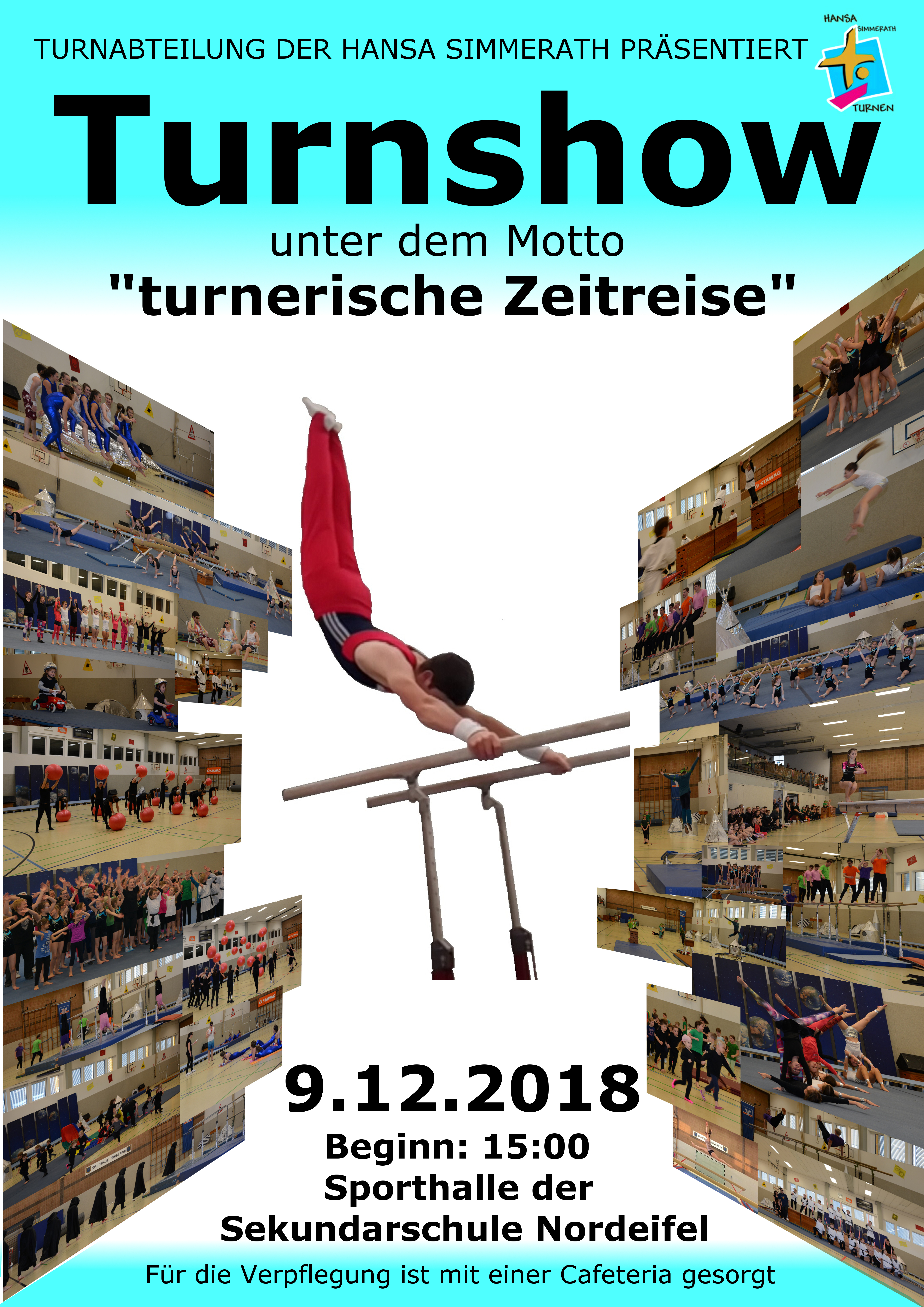 Die zweijährig stattfindende Turnshow der Turnabteilung der Hansa Simmerath in der Sporthalle der Sekundarschule Nordeifel stellte am 2. Advent den Jahresabschluss eines erfolgreichen Turnjahres dar. Da jede Gruppierung der über 200 aktiven Mitglieder zählenden Abteilung einen eigenen Programmpunkt zum Thema des Nachmittags: „turnerische Zeitreise“ gestaltete, konnten Vorführungen mit einem dementsprechend breiten Spektrum gezeigt werden.