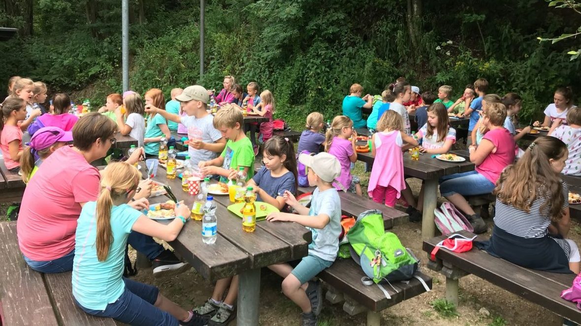 Über 40 Kinder sind unserer Einladung zu einer kleinen Wanderung mit anschließendem Grillen gefolgt und sind zur gewohnten Zeit an der Schwimmhalle erschienen; dort wurden die Kinder schon von ihren Trainern erwartet.