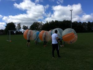 Der diesjährige Sommerausflug der Hansa-Jugendabteilung führte 14 Vereinsjugendliche am 08. September auf den Sportplatz nach Mützenich. Dort wurden wir von einem Trainer und vielen Bubble Balls erwartet. Nach einer kurzen Einweisung ging es dann auch schon los. Egal ob Fußball, Last Man Standing oder Chinesische Mauer, es wurde sich gegenseitig umgelaufen und über den Sportplatz gerollt was das Zeug hielt. Angst vor Verletzungen hatte niemand, da der riesige Luftball um uns herum, genug Schutz bot. Im Anschluss an die Bubble- Ball- Spiele wurde gemeinsam am Sportplatz gegrillt und so der Sommerausflug ausklingen gelassen.